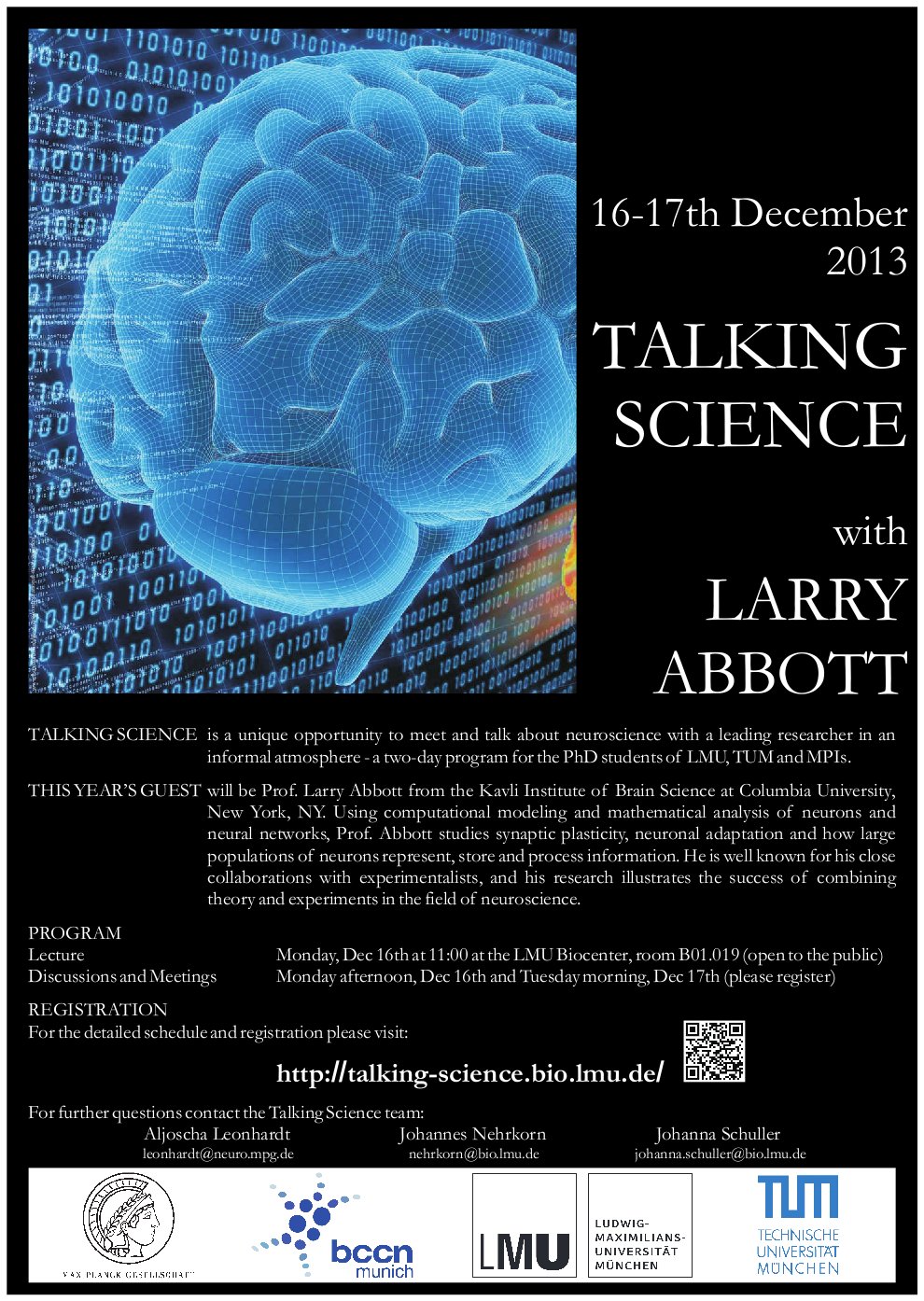 Talking Science with Larry Abbott December 16-17, 2013 Organized by Aljoscha Leonhardt, Johannes Nehrkorn, Johanna Schuller |