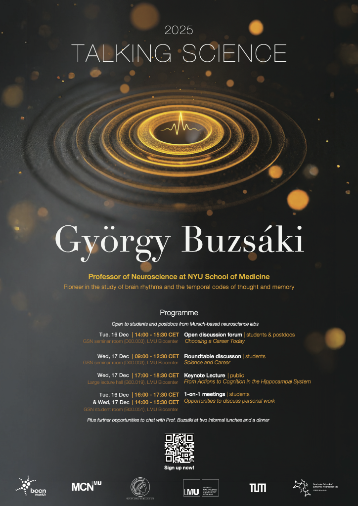 Talking Science with György Buzsáki December 16-17, 2025 Organized by Jonathan Gant, Elizabeth Herbert, Carlos Gomez-Guzman, Lukas Meyer-Olbersleben |